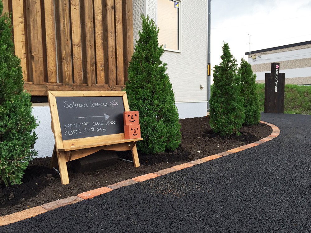 建物南側の黒土部分に、一昨日ビャクシンが植わりました!! 周りの緑も色濃くなる中、Sakura Terraceのガーデン化計画の第一歩です。 庭造りはいろいろな構想がありますが すこしずつ、楽しみながら進めていこうと思います。 入口が分かりづらく、皆さまを迷わせてしまっていますが 北側の桜並木と河川敷に広がる景色を見ていただきたくて 店舗は建物北側、入口は東側となっています。 知る人ぞ知る入口でスミマセン。。。