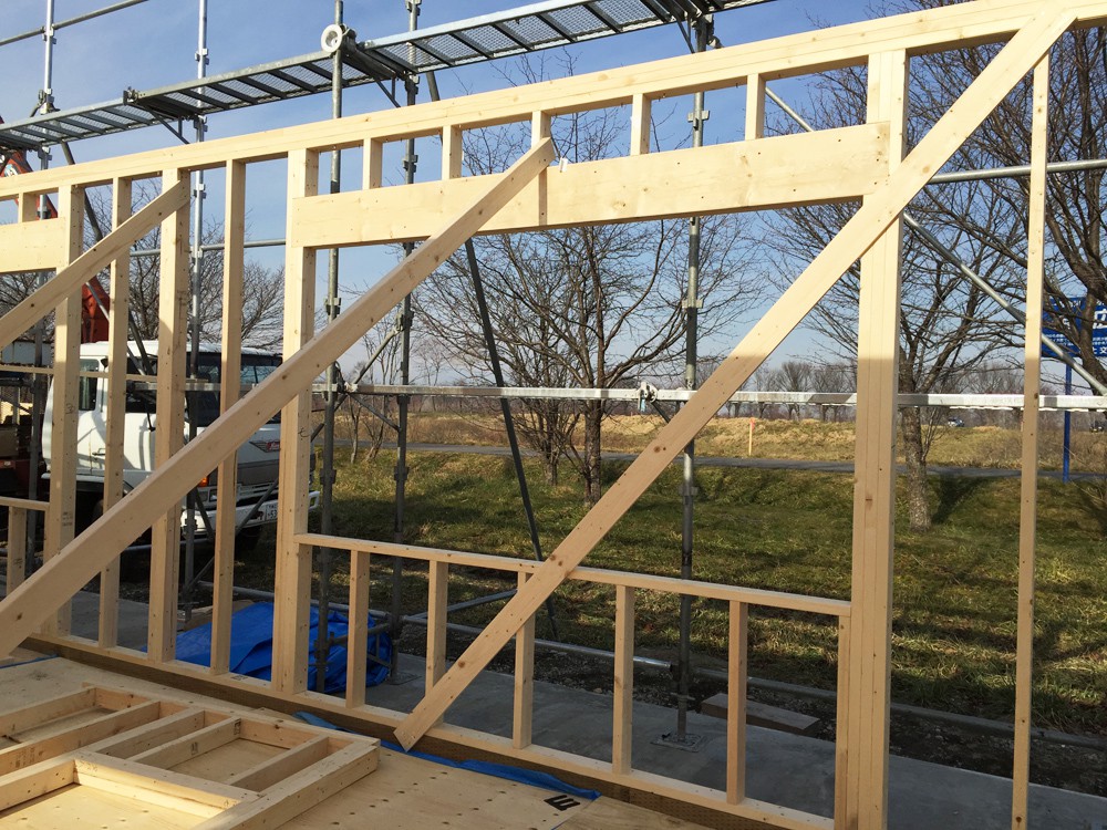 建物の柱が建ち始めました。 窓枠も見えてきて、窓からの景色が想像できるまでに。 お店の名前に相応しく、帯広川を挟んで手前と奥に桜並木が見えます。